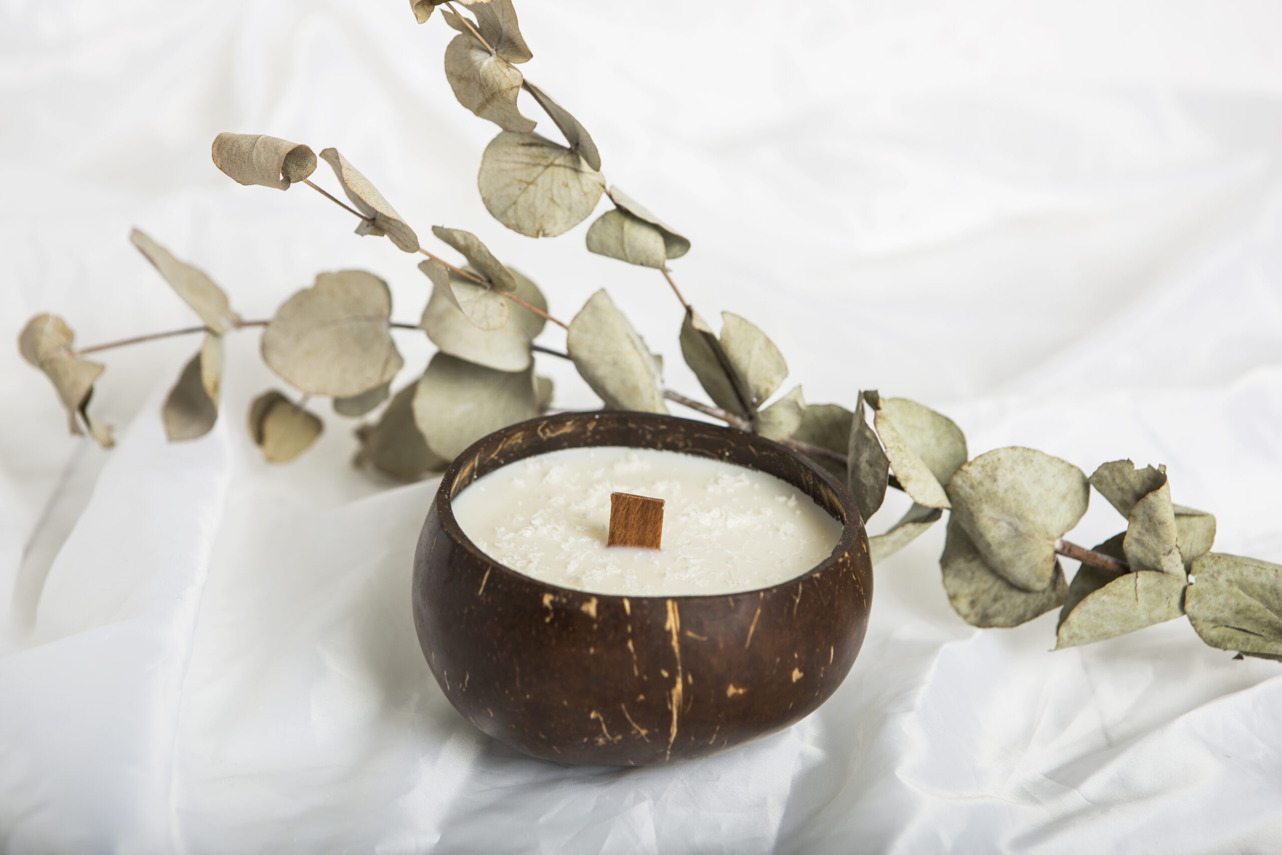 Kokoso žvakė su medine dagtimiKokoso žvakė su medine dagtimi